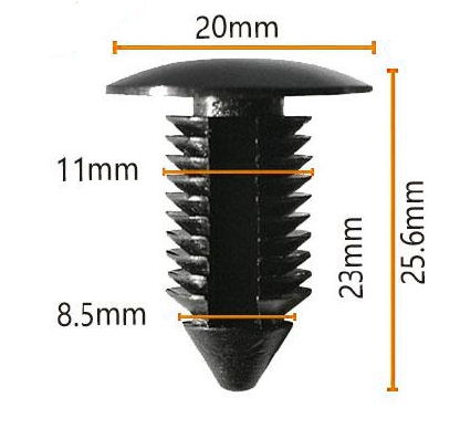 Дувваи умумии дукарата 25,6 мм аст, паҳнӣ 20 мм аст ва баландии сар 11 мм аст.